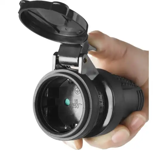 Каучуковый разъем ЭРА R8BIP44 c заземлением, прямой, 16A, IP44, черный Б0044541