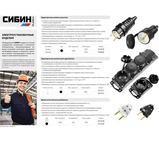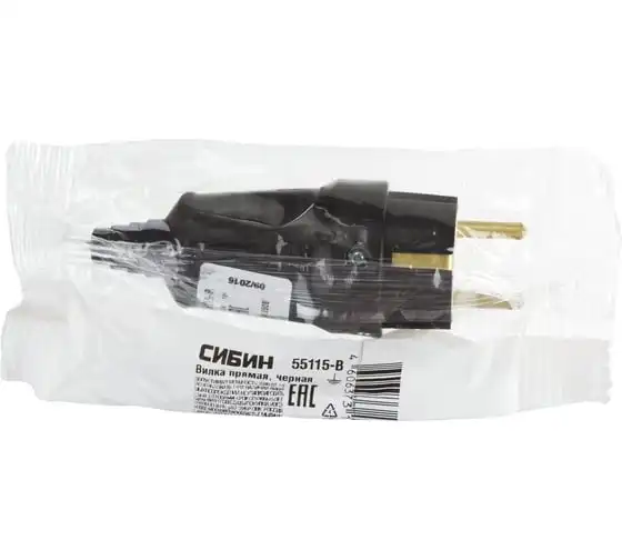 Электрическая ударопрочная вилка с заземлением, 16А / 220В, черная СИБИН 55115-B