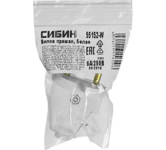 Электрическая разборная вилка 6А/220В белая СИБИН 55152-W