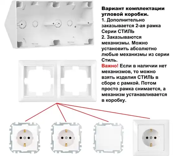 Угловая коробка Bylectrica 2-местная, для установки выключателей и розеток, серия СТИЛЬ, белый, КУ-442
