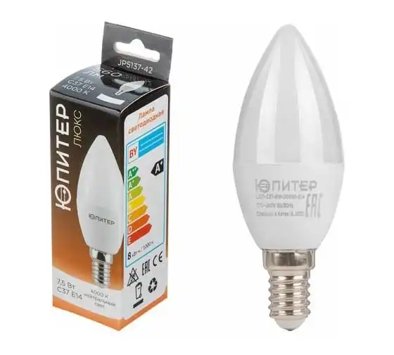 Светодиодная лампа ЮПИТЕР E14 Люкс C37 7,5 Вт 4000К JP5137-42