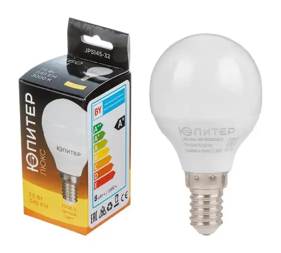 Светодиодная лампа ЮПИТЕР E14 Люкс G45 7,5 Вт 3000К JP5145-32