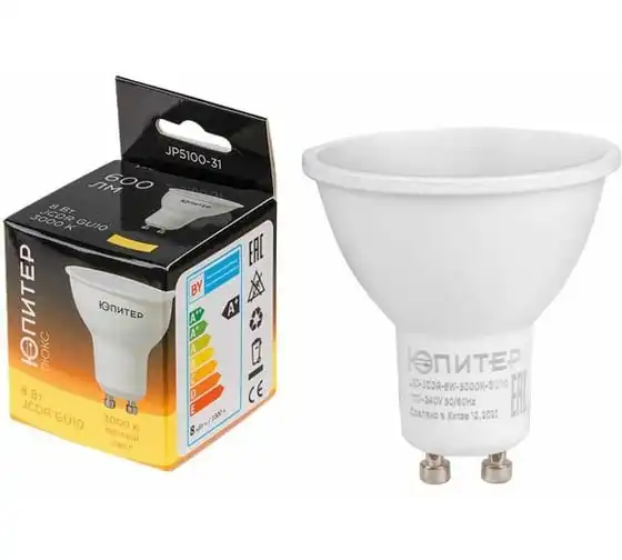 Светодиодная лампа ЮПИТЕР GU10 ЛЮКС 8 Вт JCDR 3000К JP5100-31