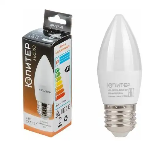 Светодиодная лампа ЮПИТЕР E27 Люкс C37 6 Вт 4000К JP5137-41