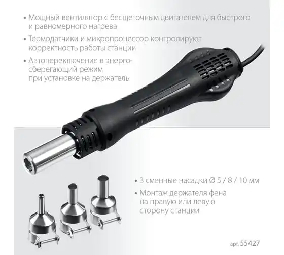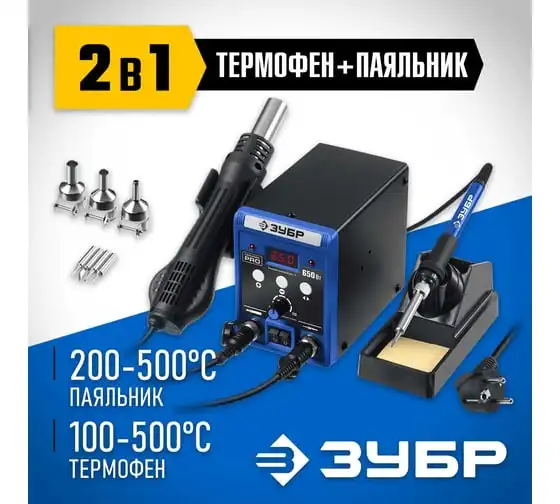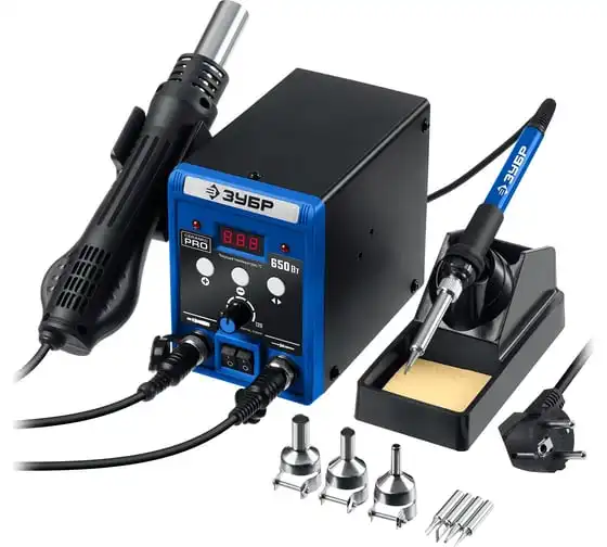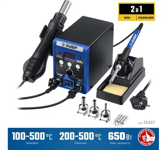 Ремонтная паяльная станция ЗУБР Пср-650 2-в-1,100-500°С, 650 Вт 55427