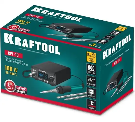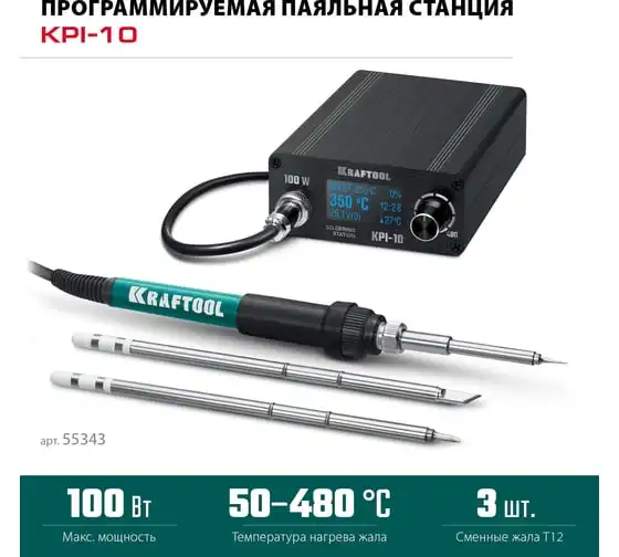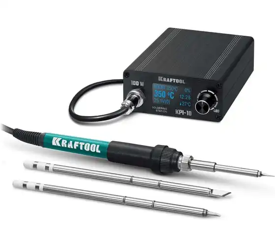 Программируемая паяльная станция KRAFTOOL KPI-10 100 Вт, 3 жала Т12 55343