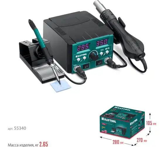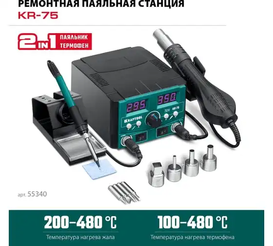Ремонтная паяльная станция KRAFTOOL KR-75 2-в-1 55340