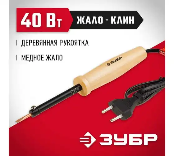 Электропаяльник ЗУБР с деревянной рукояткой, клин, 40Вт 55405-40_z01