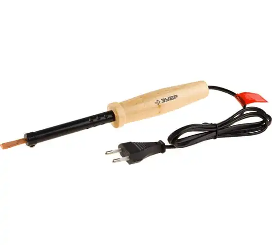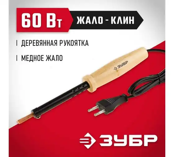 Электропаяльник ЗУБР с деревянной рукояткой, клин, 60Вт 55405-60