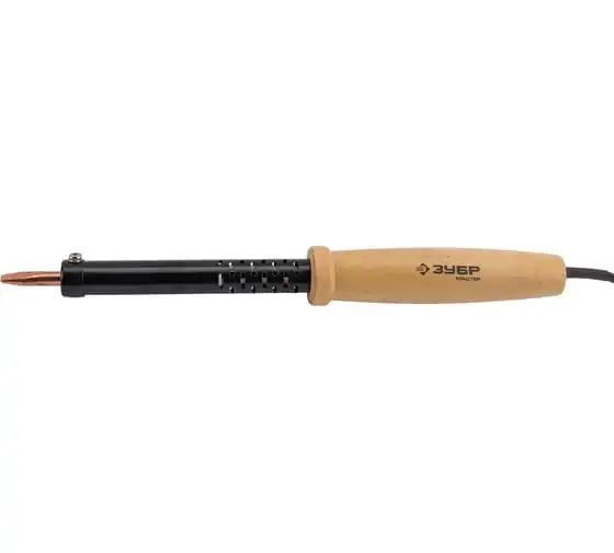 Электропаяльник Зубр Мастер с деревянной рукояткой и долговечным жалом форма клин 80 Вт 55405-80_z01
