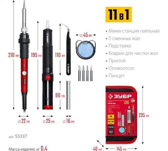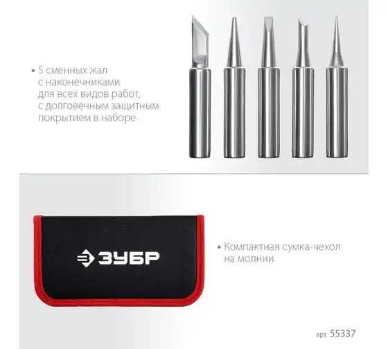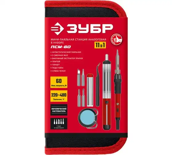 Мини-паяльная станция ЗУБР ПСМ-60 в сумке-чехле 11-в-1 55337