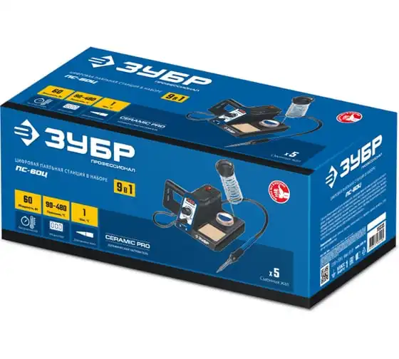 Цифровая паяльная станция ЗУБР ПС-60Ц 9-в-1 55333
