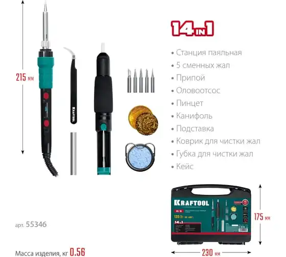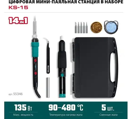 Цифровая мини-паяльная станция KRAFTOOL KS-15 в кейсе 14-в-1 55346