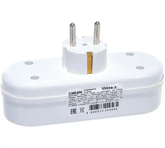 Электрический разветвитель, 3 гнезда, 6А/220В СИБИН 55097-3