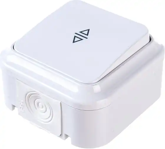 Выключатель BYLECTRICA 1-клавишный открытая установка, перекрестный IP54 ПРАЛЕСКА АКВА, белый, А6/2 10-872