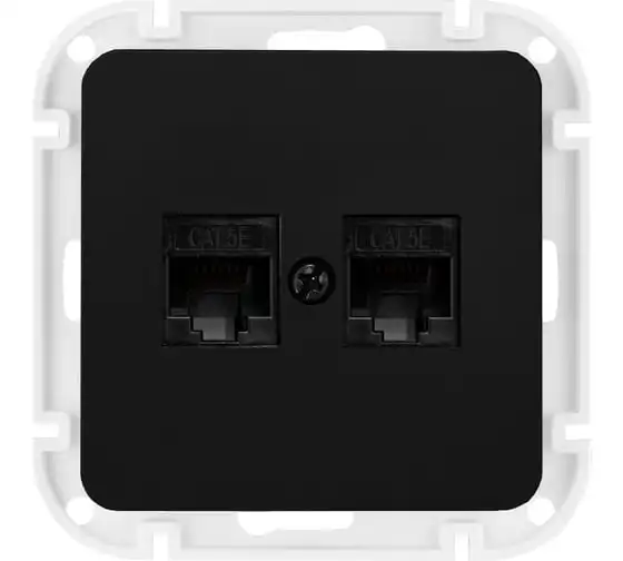 Механизм компьютерной розетки Bylectrica 2-местная кат 5е, СУ серия АСТРУМ, карбон РК216-6512 карбон