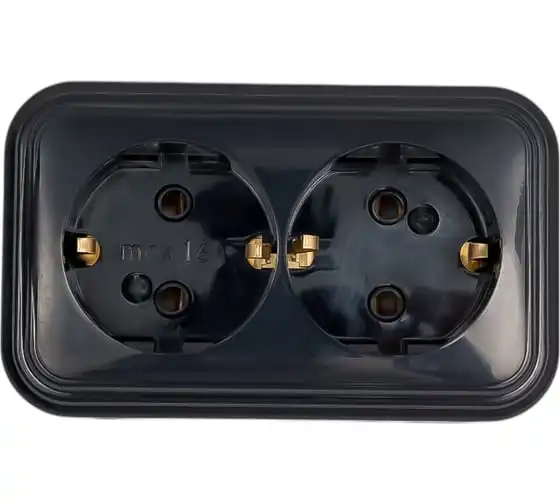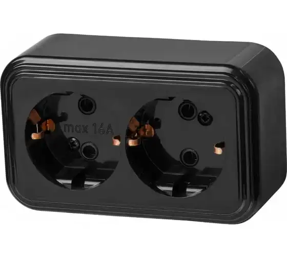 1-местная розетка Bylectrica открытой установки, с землей, IP54, серия ПРАЛЕСКА АКВА, РА16-297 черный