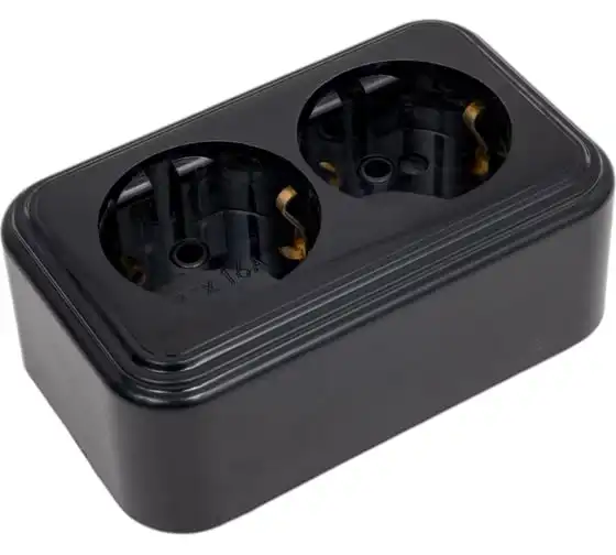 Розетка ЮПИТЕР двойная наружная с заземлением Стандарт черная JP7412-05