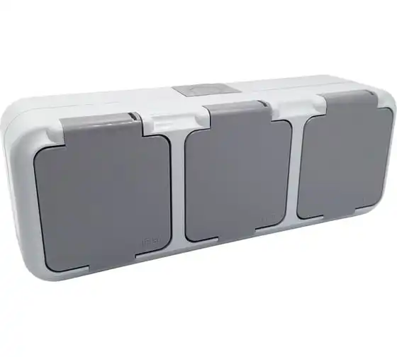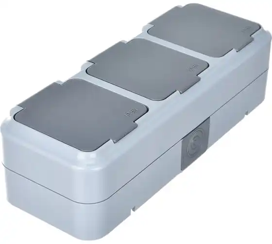 3-местная розетка Bylectrica ОУ с с заземлением, IP54, серия ПРАЛЕСКА АКВА, серый, РА16-0132(03)