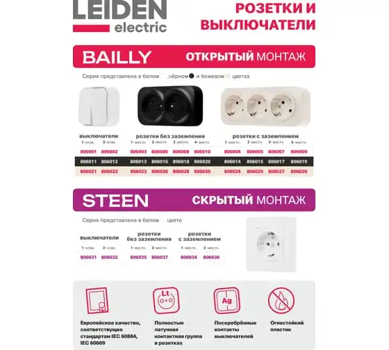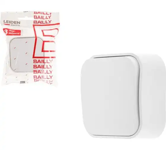 Выключатель 1 клавишный LEIDEN ELECTRIC (открытый, 10А) белый, Bailly, 806001