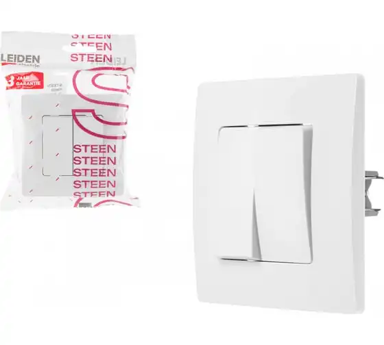 Выключатель LEIDEN ELECTRIC 2 клавишный (скрытый, 10А) белый, Steen, 806032