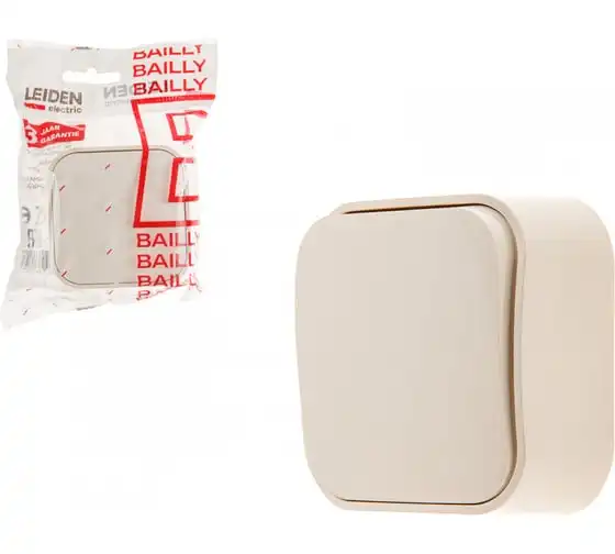 Выключатель LEIDEN ELECTRIC 1 клавишный (открытый, 10А) бежевый, Bailly, 806021