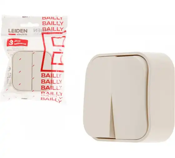 Выключатель LEIDEN ELECTRIC 2 клавишный (открытый, 10А) бежевый, Bailly, 806022