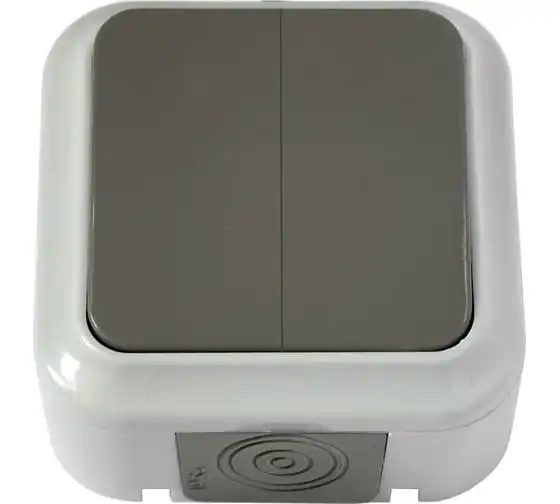 Выключатель Bylectrica 2-клавишная, открытая установка, 6А, IP54, серия ПРАЛЕСКА АКВА, серый, А56-224 03