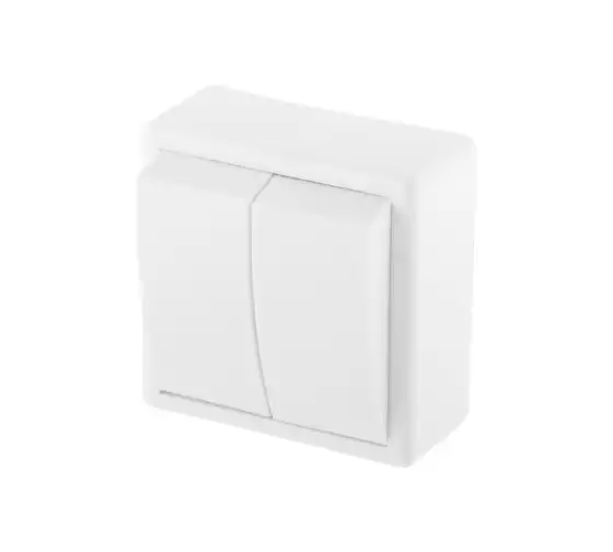 Выключатель ЮПИТЕР двухклавишный наружный Эконом белый JP7421-02