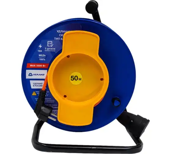 Удлинитель АТЛАНТ ПВС Атом 2х1,5 50м на садовой катушке 40280