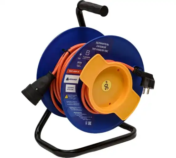 Удлинитель АТЛАНТ ПВС Атом 2х2,5 30м на садовой катушке 40281
