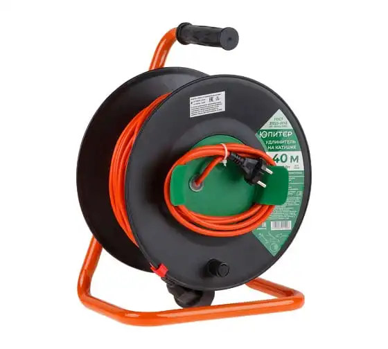 Удлинитель на катушке ЮПИТЕР 40 м 4 розетки 3,5 кВт с заземлением JP8404-02
