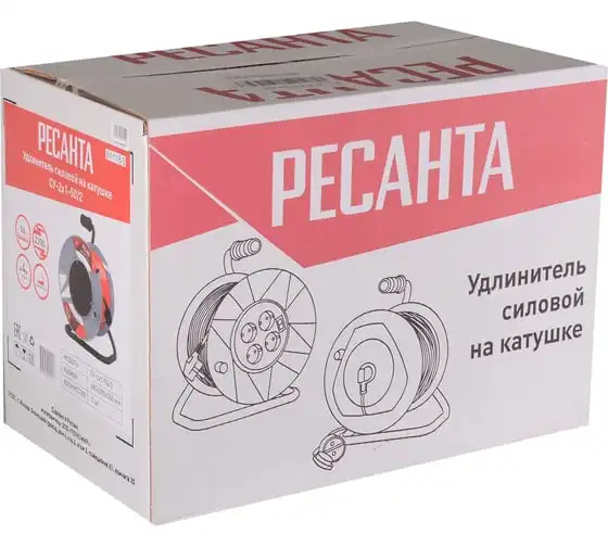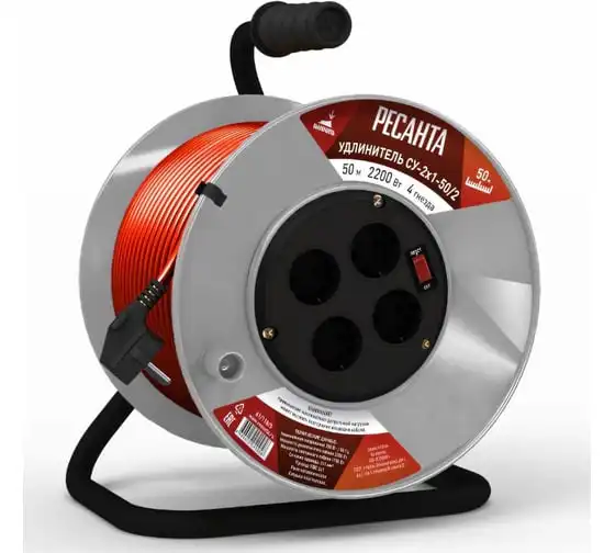 Силовой удлинитель Ресанта на катушке, СУ-2x1-50/2 (с выкл., 4 розетки) 61/118/5