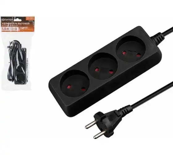 Удлинитель ЮПИТЕР 1,5 м 3 розетки 2,2 кВт черный JP8101-30