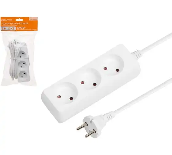 Удлинитель ЮПИТЕР 1,5 м 3 розетки 3,5 кВт с заземлением белый JP8105-21
