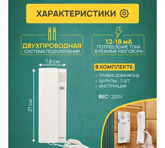 Трубка домофона с индикатором и регулировкой громкости REXANT 45-0348