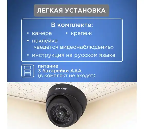 Муляж внутренней камеры REXANT купольная, с вращающимся объективом, черная 45-0230