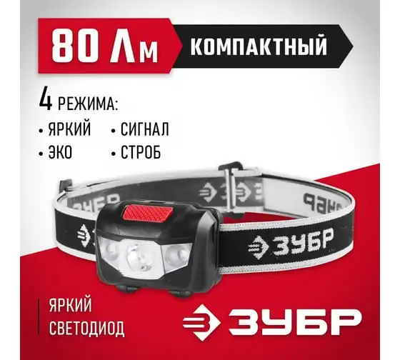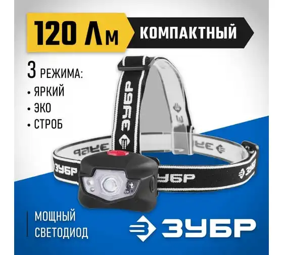 Налобный фонарь ЗУБР 3AAA, 1 Вт, +2LED 56436