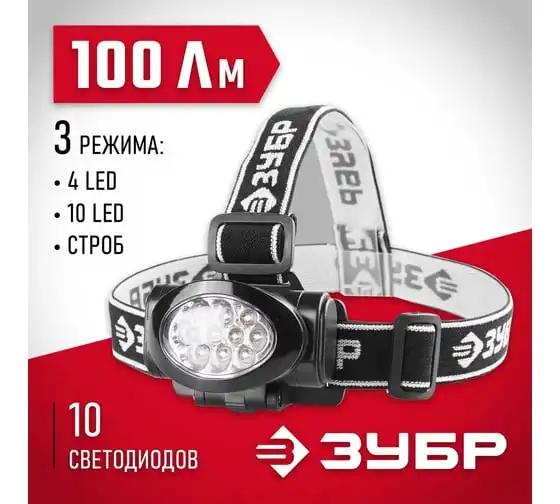 Налобный фонарь ЗУБР 3AAA 10 ultra LED 56438