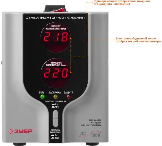 Автоматический стабилизатор с цифровой индикацией Зубр АСН-1000-1-Ц ПРОФ. 59375-1