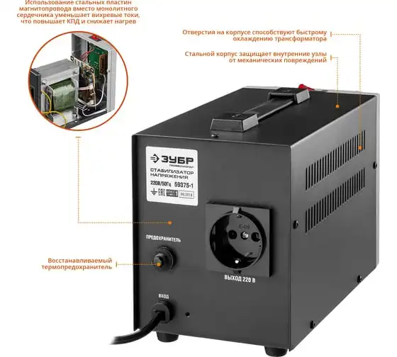 Автоматический стабилизатор напряжения Зубр Профессионал 500 ВА 59381-0.5