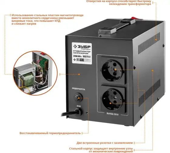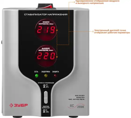 Автоматический стабилизатор напряжения Зубр Профессионал 2000ВА 59375-2