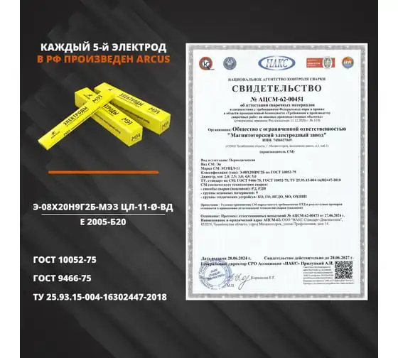 Электрод МЭЗ ЦЛ-11 2.5 мм, 1 кг Ц0034841 применяется при сварке котлов, труб, эксплуатируемых при высоких температурах, в том числе – в условиях агрессивных рабочих сред. Имеет основное покрытие. Материал стержня – высоколегированная сталь СВ08Х19Н10Б. Свариваемые стали: коррозионностойкие обычные, жаростойкие и жаропрочные с температурой рабочей среды 400–600 0°С. Сертифицирован НАКС.