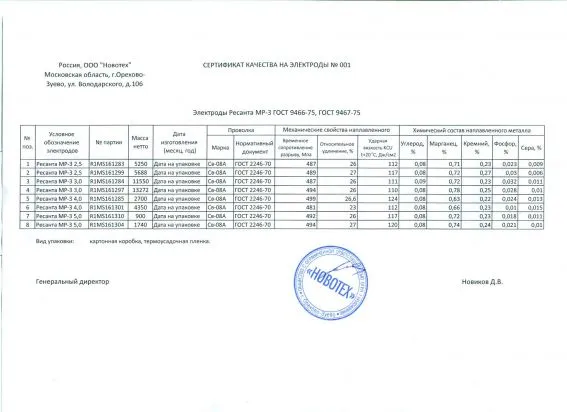 Плавящиеся электроды РЕСАНТА изготовляют из сварочной проволоки Св-08А, ГОСТ 2246-70. Поверх металлического стержня методом опрессовки под давлением наносят слой защитного рутилового покрытия. Роль покрытия заключается в металлургической обработке сварочной ванны, защите от атмосферного воздействия и обеспечении более устойчивого горения дуги.