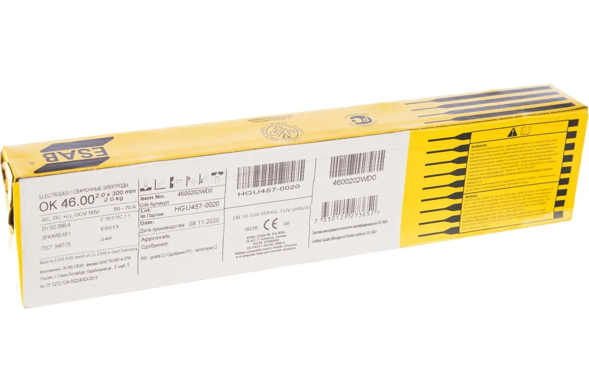 Электрод ОК 46.00 ESAB СВ000009933 предназначен для сварки методом MMA углеродистых конструкционных и судовых сталей. Сварка ведется во всех пространственных положениях. Работы следует проводить на постоянном токе обратной полярности и переменным током. Наплавленный металл образует ровный и высококачественный шов. Электрод широко применяется при сварке листов с гальваническим покрытием. Не чувствителен к ржавчине и поверхностным загрязнениям.