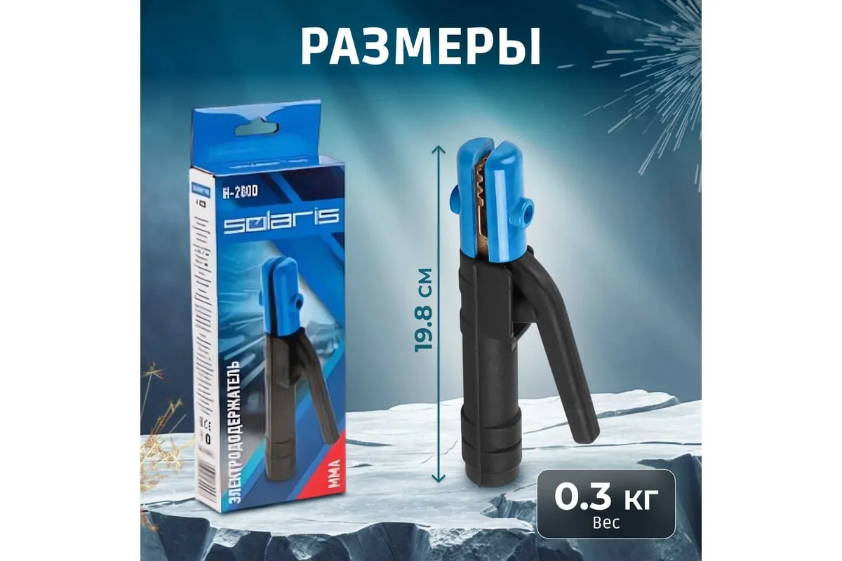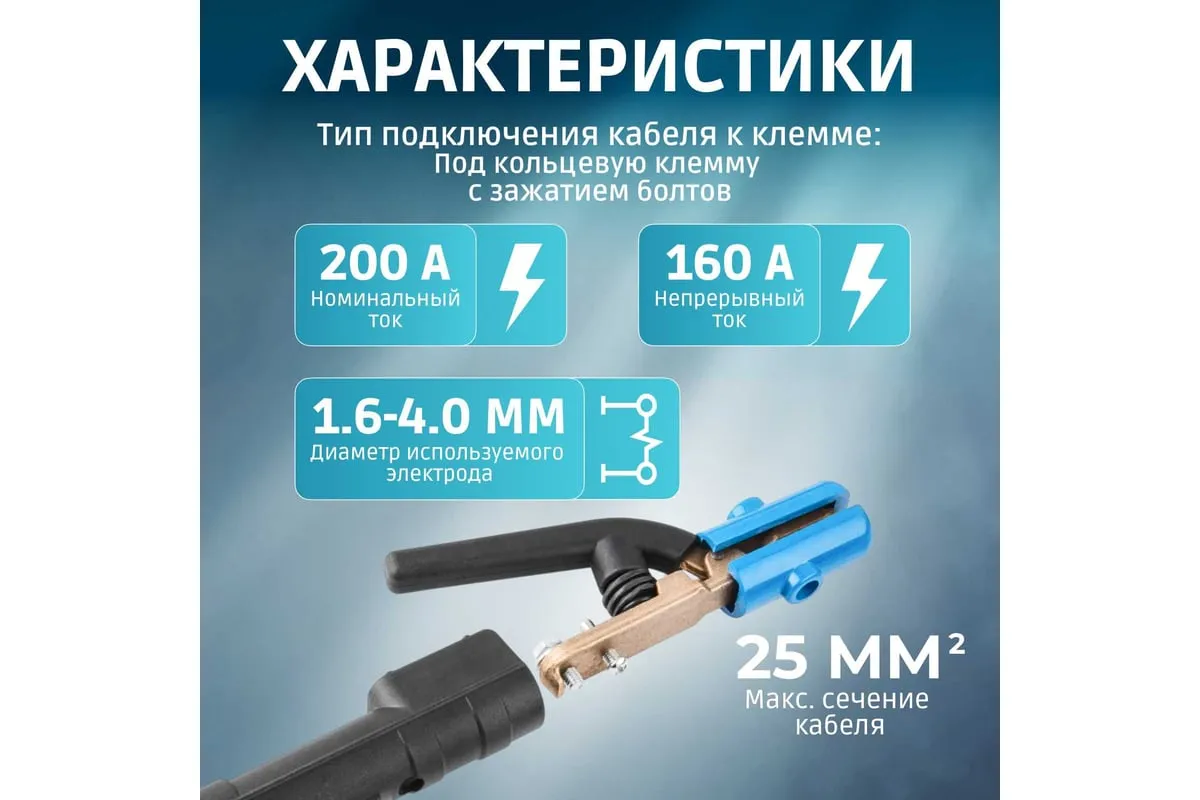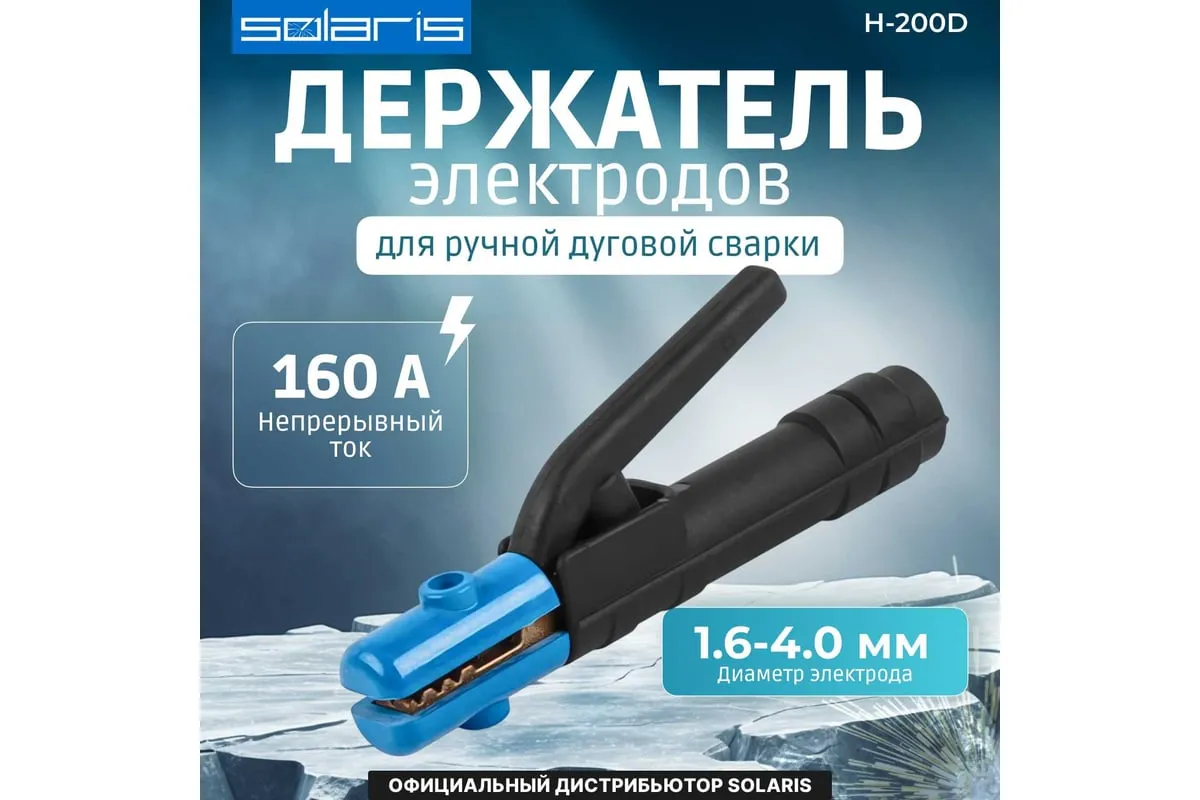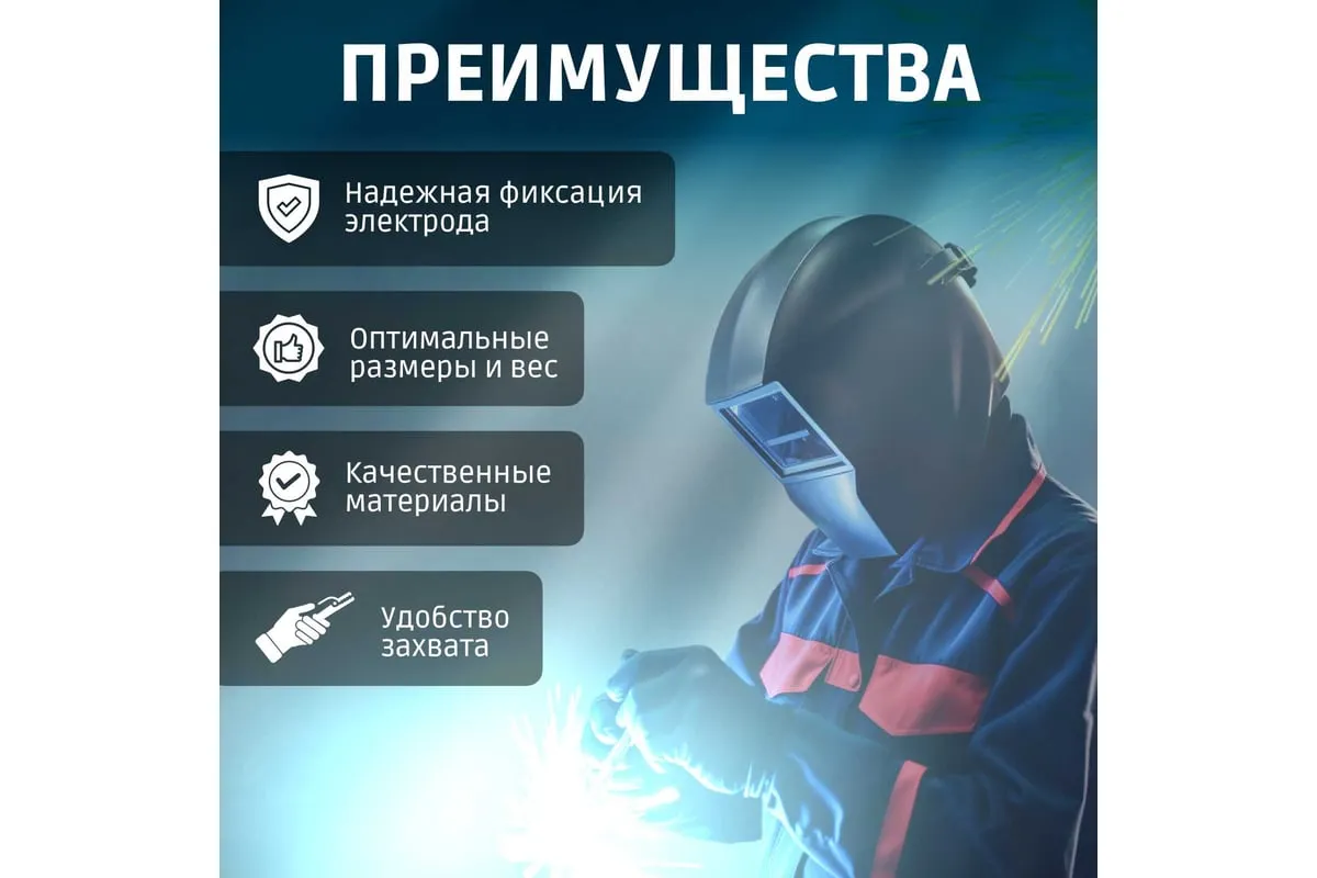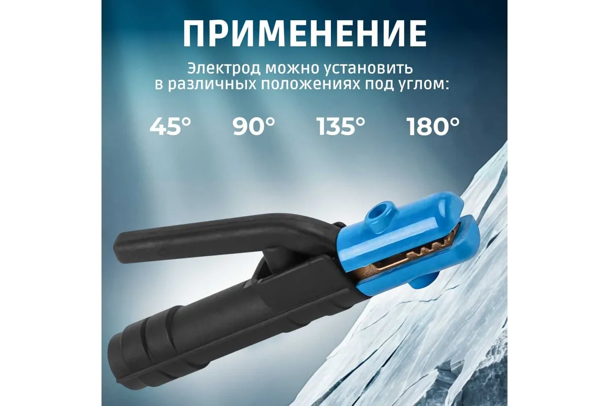Электрододержатель для ручной дуговой сварки, который удерживает электрод во время проведения сварочных работ. Электрод можно установить в различных положениях: под углом 45°, 90°, 135° и 180° в зависимости от требуемых задач.