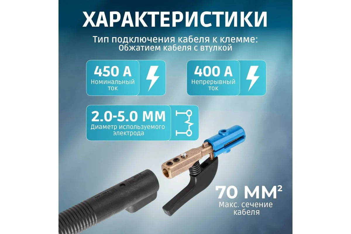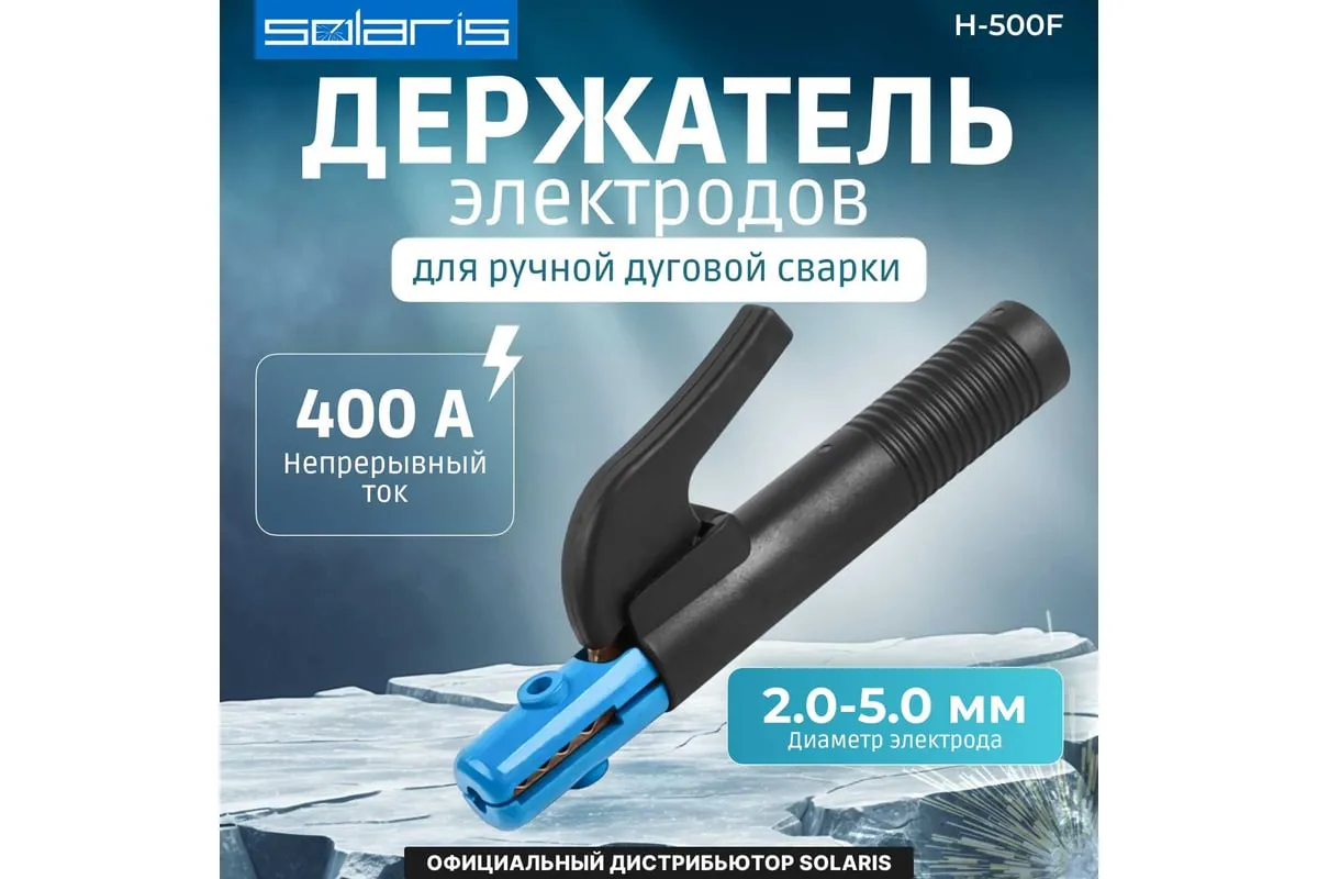 Электрододержатель для ручной дуговой сварки, который удерживает электрод во время проведения сварочных работ. Электрод можно установить в различных положениях: под углом 45°, 90°, 135° и 180° в зависимости от требуемых задач.