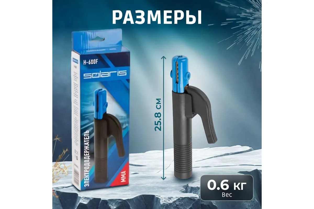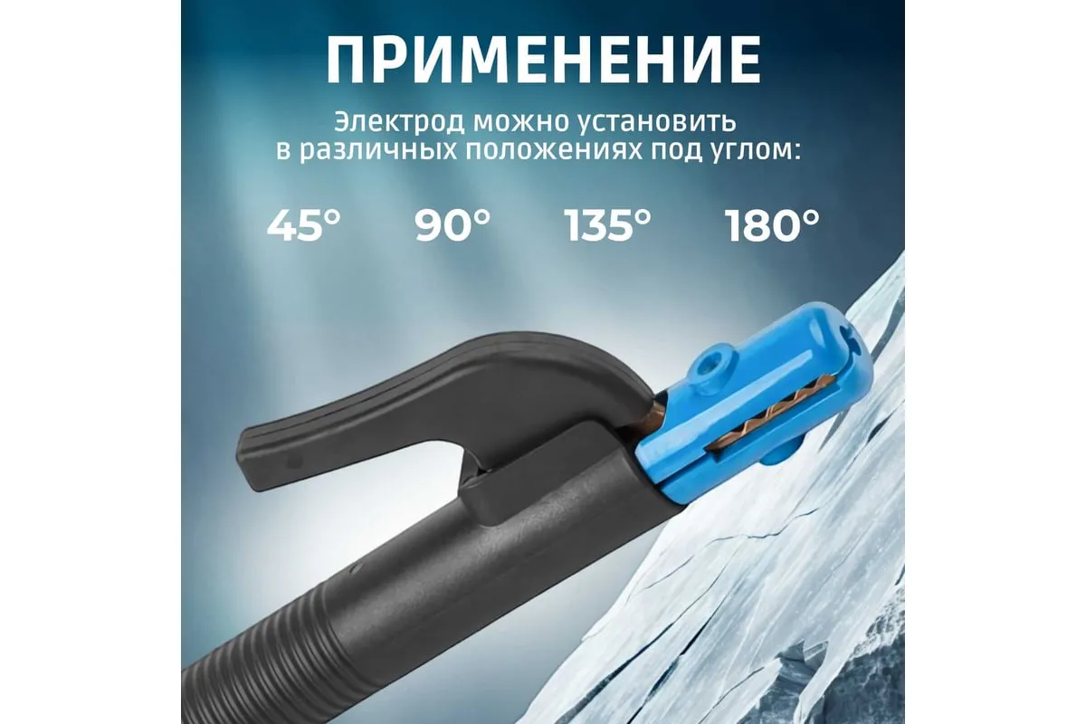 Электрододержатель для ручной дуговой сварки, который удерживает электрод во время проведения сварочных работ. Электрод можно установить в различных положениях: под углом 45°, 90°, 135° и 180° в зависимости от требуемых задач.
