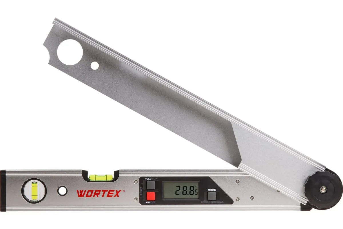 Угломер электронный WORTEX DAM 4500 (0323271) - это высокоточный электронный угломер (+-0,1°), который отлично подходит для: выравнивания торцовочных пил, установки направляющих для ГКЛ, подвесных потолков, а также столярных работ. Достаточно установить прибор на поверхность или прикрепить к вертикальной конструкции.