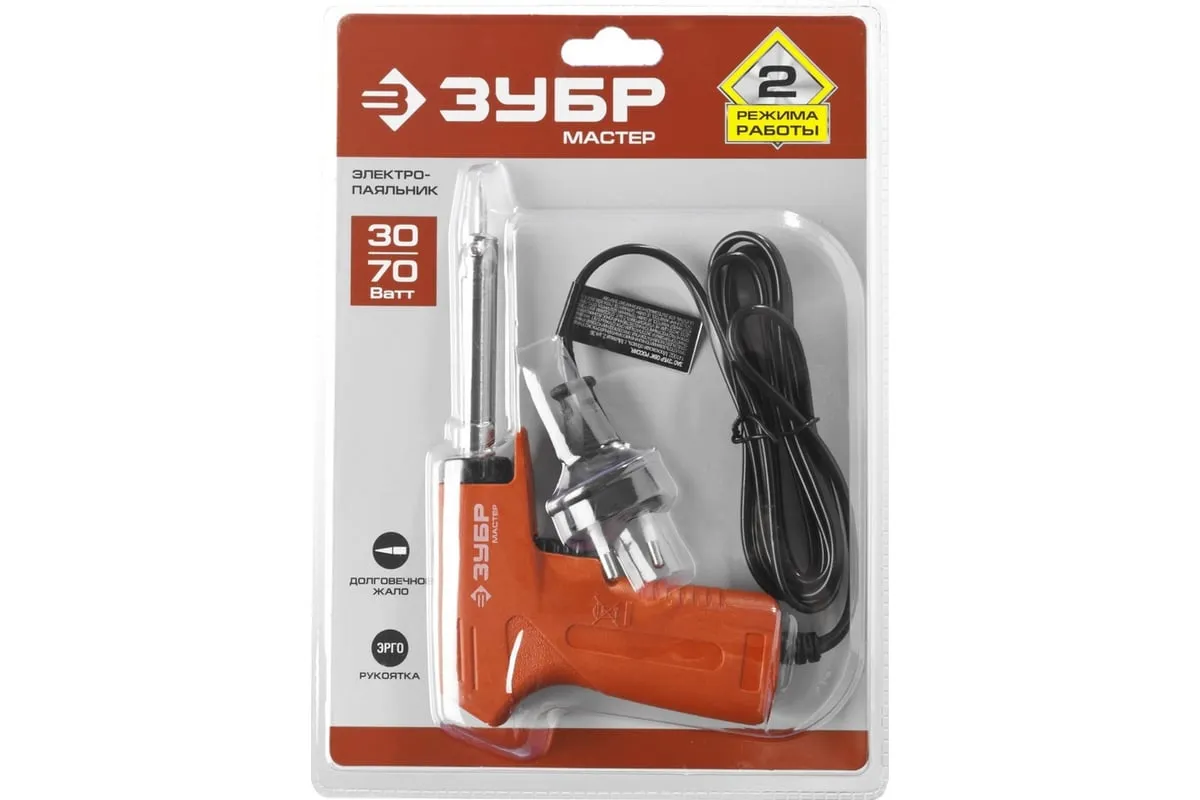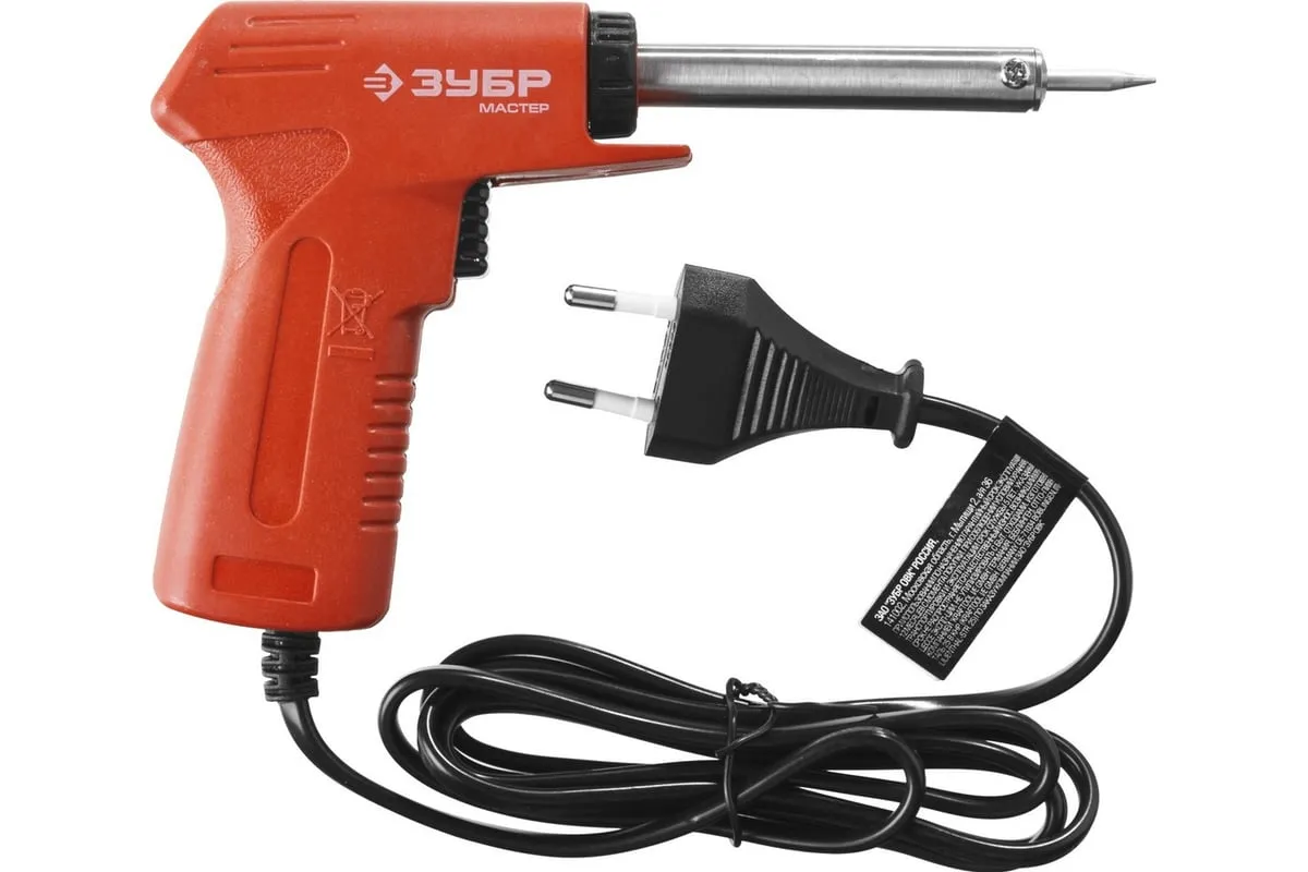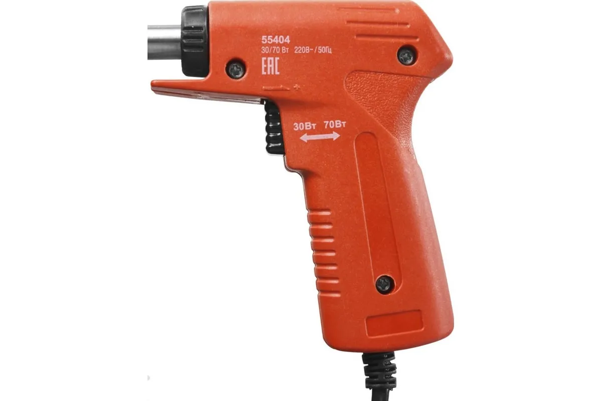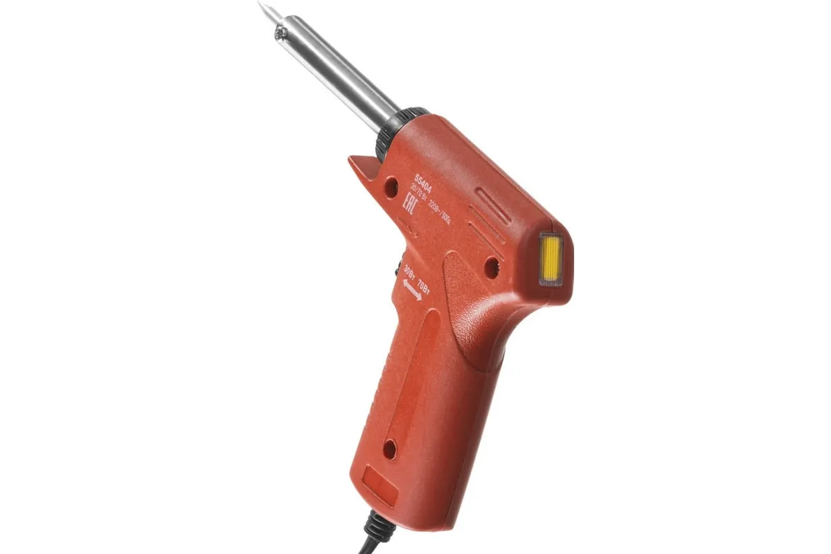 Электропаяльник ЗУБР пистолетного типа 30-70Вт конус 55404 обеспечивает легкую и качественную пайку различных деталей. Имеет медное жало со специальным защитным покрытием. Ручка паяльника выполнена в форме пистоле и удобна в обхвате. Изделие изготовлено с использованием современных материалов, обладает высокой надежностью и продолжительным рабочим ресурсом.